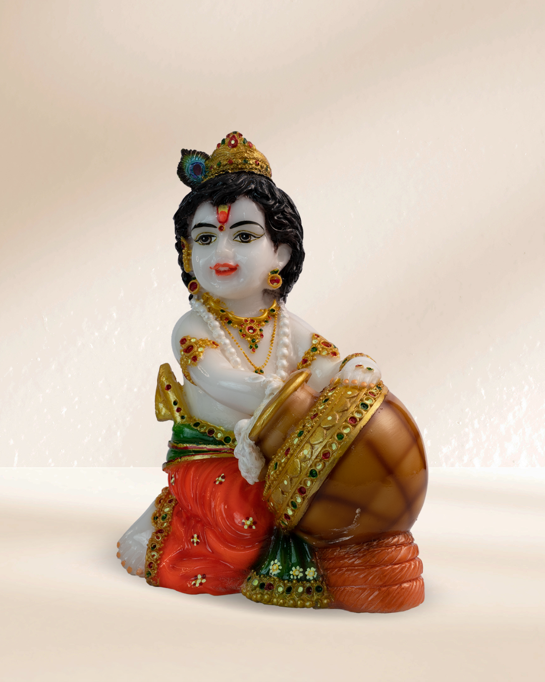 - Design: Depicts Bal Gopal kneeling with a butter pot, with butter spilling from his hands