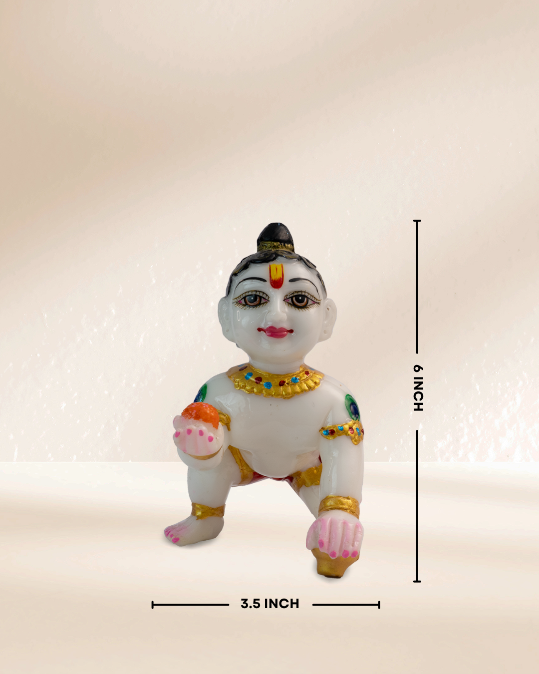 This adorable Bal Gopal Idol adds joy and positivity to any space, symbolizing innocence, love, and blessings.