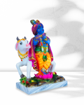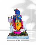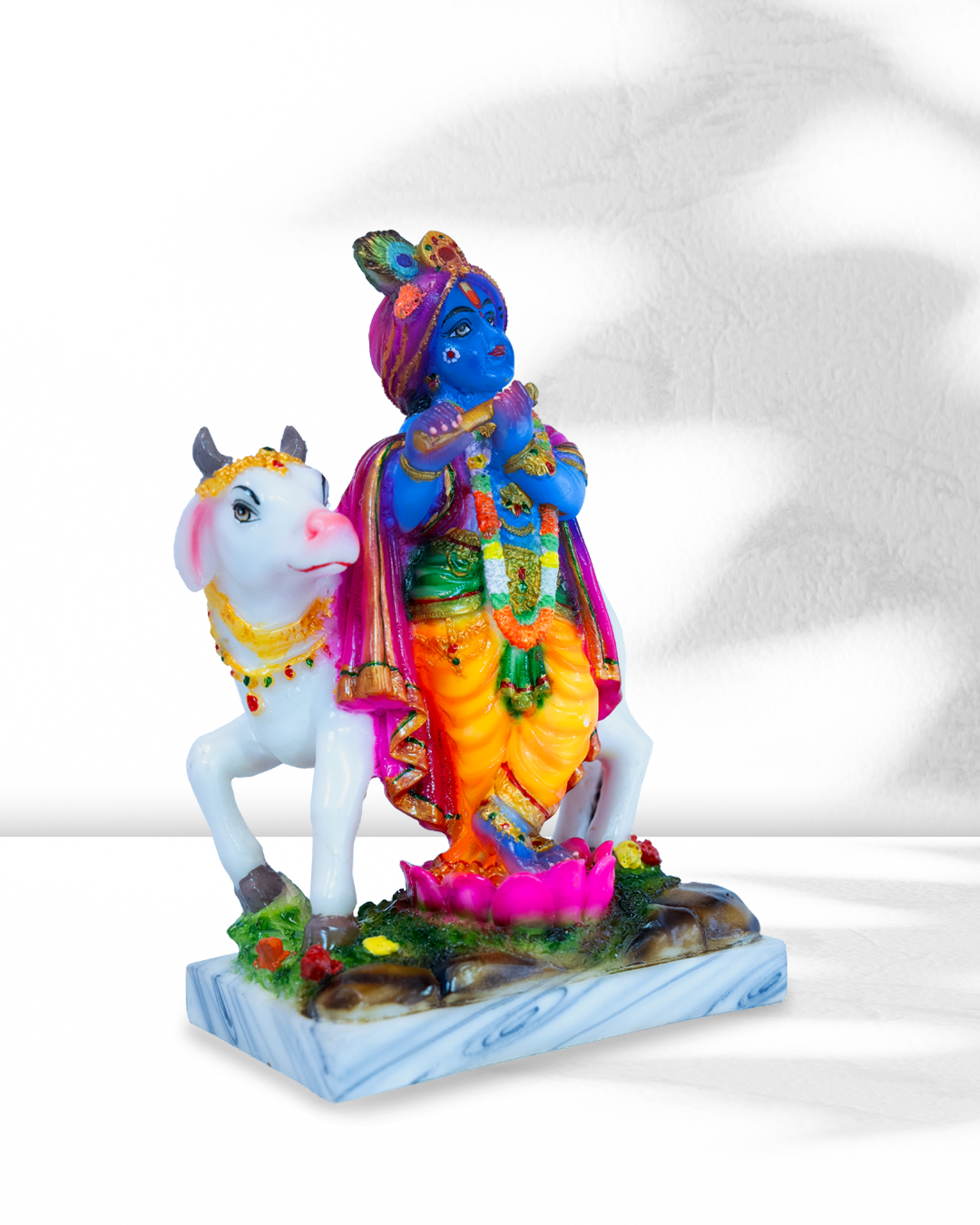 This beautifully crafted Krishna Ji Idol is made from high-quality composite marble. The idol shows Krishna Ji playing the flute with his beloved cow beside him, symbolizing love, peace, and harmony. The vibrant colors and intricate detailing make it a graceful addition to your home decor, temple, or festive celebrations like Janmashtami.