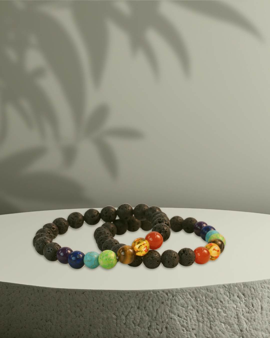 Our Bracelet features black lava stones paired with seven colorful beads, each representing one of the body's main energy centers, or chakras. This accessory not only enhances your style but also promotes balance and positive energy in your life.